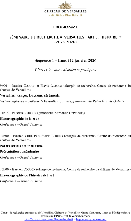Seminario bajo la dirección de Flavie Leroux y de Bastien Coulon, científicos de investigación al Centre de recherche du château de Versailles.