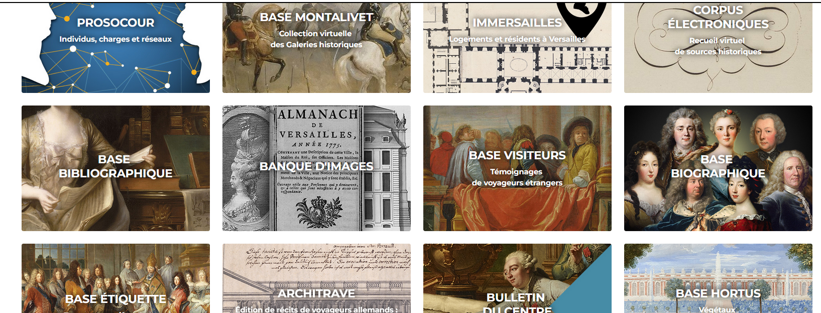 D’un autre, l’accès vers les autres bases et outils du CRCV y est immédiat (Prosocour, Immersailles, Bulletin du CRCV, Architrave, ressources 3D).