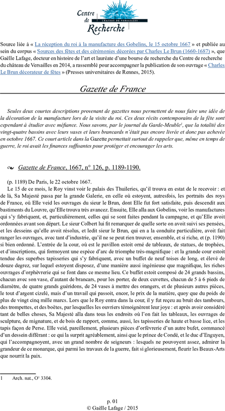 Gazette de France, 1667, no 126, p. 1189-1190.
