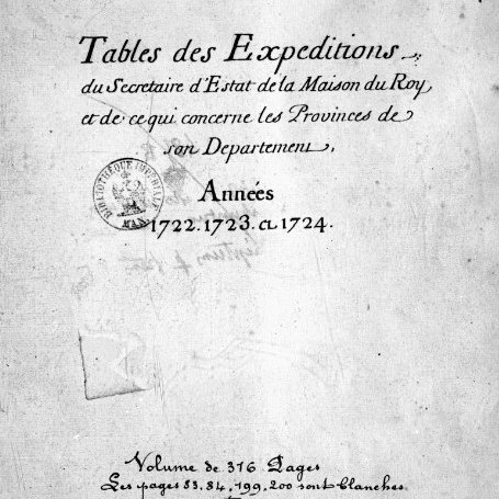Tables des registres des expéditions des secrétariats d’États dont celui de la Maison du roi (XVIIe-XVIIIe siècle)