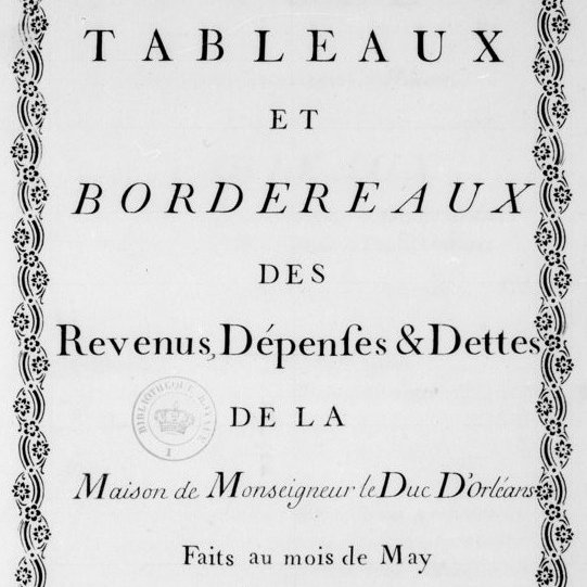 Tableaux et bordereaux de revenus, dépenses et dettes de la maison du duc d’Orléans (1756)