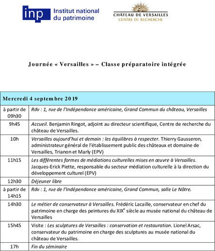 Organisé pour les douze élèves de la classe préparatoire intégrée aux concours externes de conservateur du patrimoine (CPI mise en place par l’Institut national du patrimoine en partenariat avec l’École du Louvre, l’École nationale des chartes et la Fondation Culture & Diversité, avec le soutien du Commissariat général à l’égalité des territoires), ce séminaire alterne conférences et visites menées par des spécialistes.
