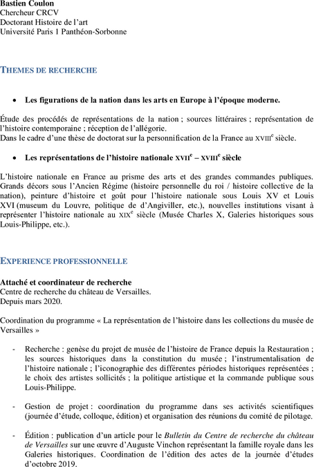 Doctorant, université Paris 1 Panthéon-Sorbonne, École doctorale 441 Histoire de l’art.