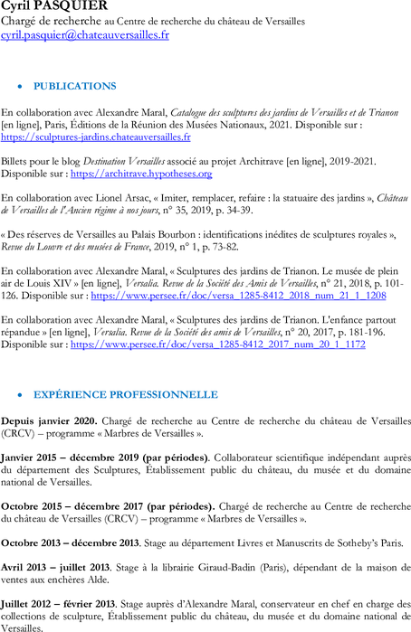 Recherches historiques sur la statuaire et les décors sculptés des châteaux de Versailles et de Trianon.