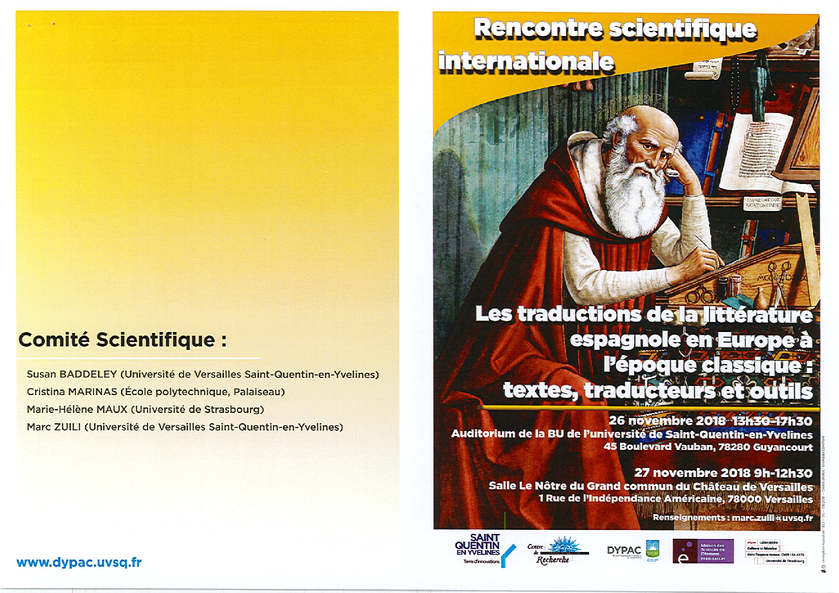 De nature pluridisciplinaire, cette rencontre a réuni des anglicistes, germanistes, italianistes, hispanistes et des historiens du livre ou de l’art (dont trois collègues appartenant à deux Établissements du périmètre Paris-Saclay) autour des traductions de la littérature espagnole en Allemagne, Angleterre, France et en Italie du XVIe au XVIIIe siècle.