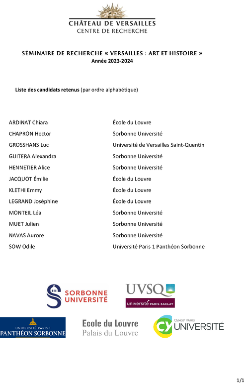 Le Centre de recherche du château de Versailles a organisé en cette année universitaire 2023/2024 un séminaire de recherche à destination des étudiants inscrits dans ses universités et institutions membres.