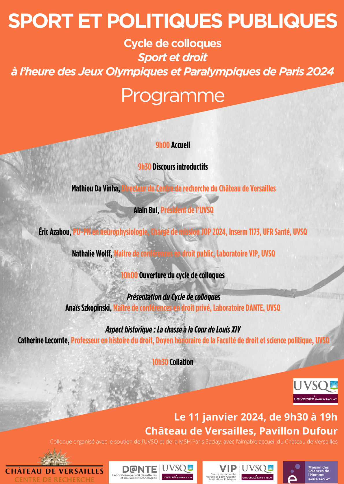 Ce premier colloque, soutenu par l’université de Versailles Saint-Quentin-en-Yvelines et la La Maison des Sciences de l’Homme Paris-Saclay, s’est déroulé dans le cadre du cycle de colloques Sport et droit organisé à l’occasion des Jeux olympiques et paralympiques de Paris 2024.