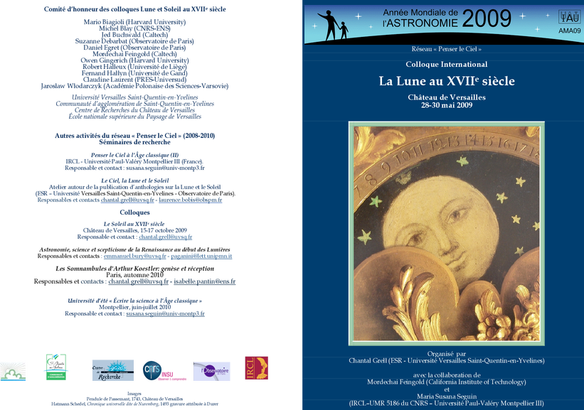 Organisé à l’occasion de l’Année Mondiale de l’Astronomie et à l’initiative du réseau « Penser le Ciel » par le Centre d’étude « État, Société et Religion en Europe, Moyen Âge – Temps modernes » de l’université de Versailles Saint-Quentin-en-Yvelines. Accueil par le Centre de recherche et la Bibliothèque municipale de Versailles.