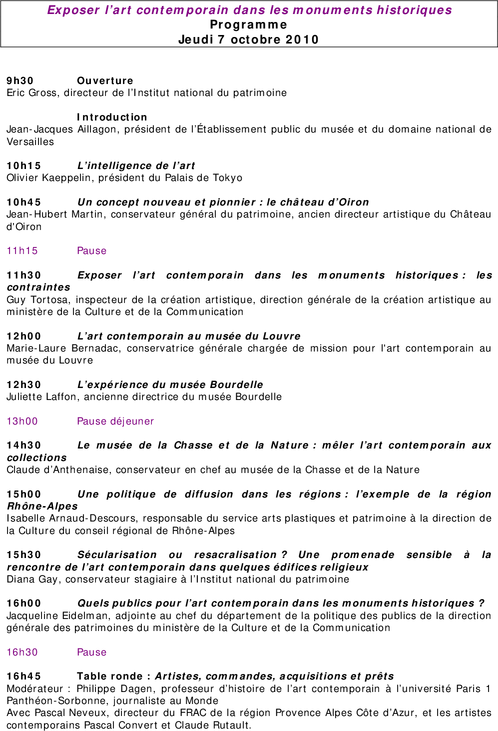 Cette journée s’est interrogée sur la légitimité à exposer des œuvres contemporaines dans un ancien monastère, dans une résidence royale, etc., sur les critiques qui en émanent tout autant que sur la venue d’un public curieux et nombreux à ces expositions.