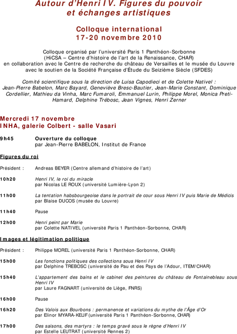 Actes parus sous le titre « Henri IV. Art et pouvoir », sous la dir. de Colette Nativel aux Presses universitaires de Rennes.