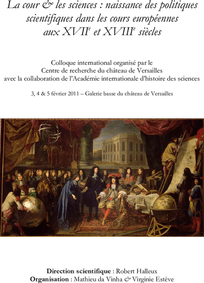 La cour, siège du pouvoir et lieu de concentration des capitaux, a toujours soutenu la recherche scientifique tandis que cette dernière devait servir les intérêts généraux du pays et la gloire de son souverain. Dans ce colloque, il s’est essentiellement agit d’étudier les politiques scientifiques volontaristes ou non des États européens sous l’Ancien Régime en s’attachant particulièrement à la recherche « fondamentale » et à la recherche « utile » (amélioration de la santé, lutte contre la famine, progrès des techniques, des constructions et des bâtiments, etc.). Volontairement comparatistes, les études ont englobé l’ère géographique européenne à travers trois axes : le financement des sciences et des scientifiques, la communauté scientifique face à la cour et, enfin, la diffusion et la culture scientifique à la cour.