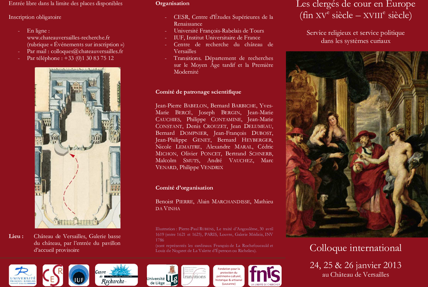 Colloque international organisé par l’université François-Rabelais de Tours (CESR), l’Institut universitaire de France, le Centre de recherche du château de Versailles et l’université de Liège (Transitions).