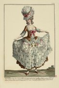Jolie danseuse vêtue d'un caraco plissé et à gorgerette décolletée de taffetas d'Italie mordoré avec un tablier de linon.