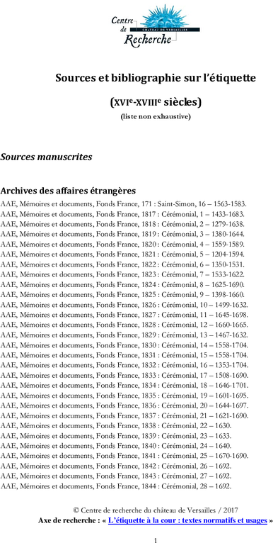 Cet axe de recherche vise à formaliser les usages non écrits de la cour de France afin de saisir l’évolution de l’étiquette à l’époque moderne entre développement, perfectionnement et/ou appauvrissement.