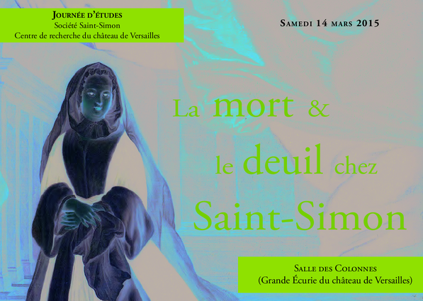 Afin d’accompagner les commémorations relatives au tricentenaire de la mort de Louis XIV, le Centre de recherche du château de Versailles et la Société Saint-Simon ont décidé d’organiser une journée d’études sur « La mort et le deuil chez Saint-Simon ». Les textes des Mémoires et des différents écrits du duc ont en effet souvent pour origines les disparitions de tels ou tels personnages. Le premier récit du jeune auteur était d’ailleurs celui des obsèques de la dauphine Bavière à Saint-Denis le 5 juin 1690, alors qu’il était âgé de quinze à peine… Les intervenants ne sont ainsi pas seulement intéressés à la mort elle-même, mais aussi au deuil qui en découlait, préfigurant ainsi la vision que Saint-Simon pouvait se faire lui aussi de sa propre mort.