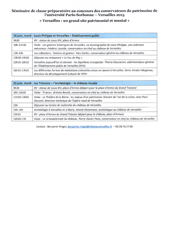 Organisé pour une vingtaine d’élèves de la classe préparatoire au concours des conservateurs du patrimoine de l’université Paris-Sorbonne, ce séminaire dirigé par son directeur des études, Milovan Stanic, maître de conférences, alterne exposés et visites menés par des spécialistes sur le thème : « Versailles : un grand site muséal et patrimonial ».