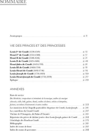 Cet ouvrage sur les princes de Condé n’est ni celui des champs de bataille et des succès militaires, ni celui des querelles politiques, ni même celui de la chasse ; ces thèmes ont déjà fait l’objet de maintes publications. Cette saga des princes de Condé (1530-1830) veut en revanche inviter le lecteur à suivre les méandres d’un art de vivre plein d’inattendus, de bosquets secrets, d’allées de traverse et d’instants le plus souvent inédits. Nous y cheminerons en compagnie d’Henri II dont l’épouse Charlotte de Montmorency sera convoitée par le roi Henri IV en 1609, de Louis II, empereur des Turcs en 1662, d’Henri-Jules, créateur du concept des « appartements du roi » à Versailles en 1683, de Louis-Henri, premier ministre en 1723 (gouverné par sa maîtresse Agnès de Prie), de Louis-Joseph qui, selon un contemporain, aurait pu être comédien s’il n’était né prince (1772)…