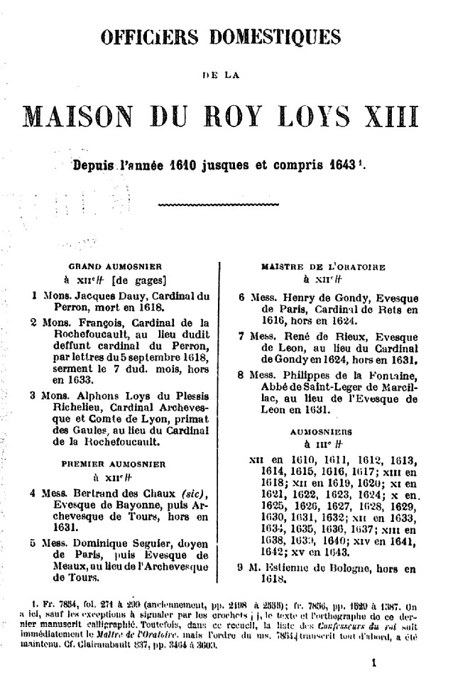 - Officiers domestiques de la maison du roy Louis XIII (1610-1643).