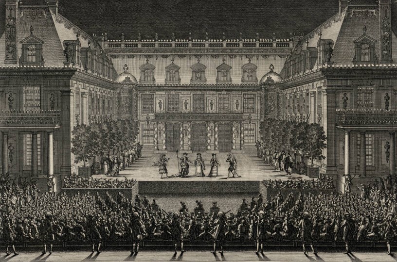Jean Lepautre, Première journée. Alceste, tragédie en musique, ornée d’entrée de Ballet, représentée à Versailles dans la cour de Marbre du Chasteau éclairé depuis le haut jusqu’en bas d’une infinité de lumières