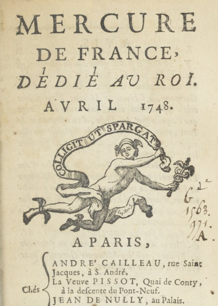 Guigard (Joannis), L’indicateur du Mercure de France, 1672-1789 contenant, par ordre alphabétique, les noms de personnages sur lesquels on trouve, dans cette collection, des notices biographiques et généalogiques, avec renvoi aux années, tomes et pages, Paris, Bachelin-Deflorenne, 1869.