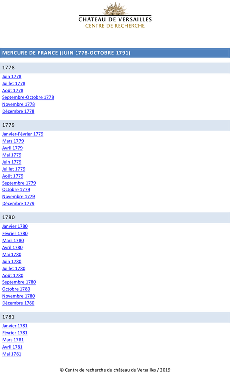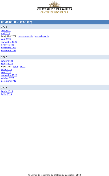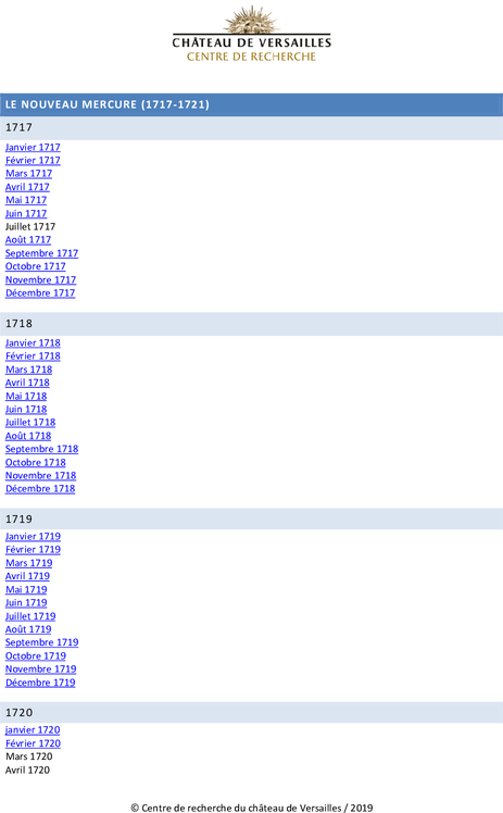 Vincent (Monique ), Mercure Galant, Extraordinaire, Affaires du temps. Table analytique contenant l’inventaire de tous les articles publiés 1672-1710, Paris, Honoré Champion, 1998.