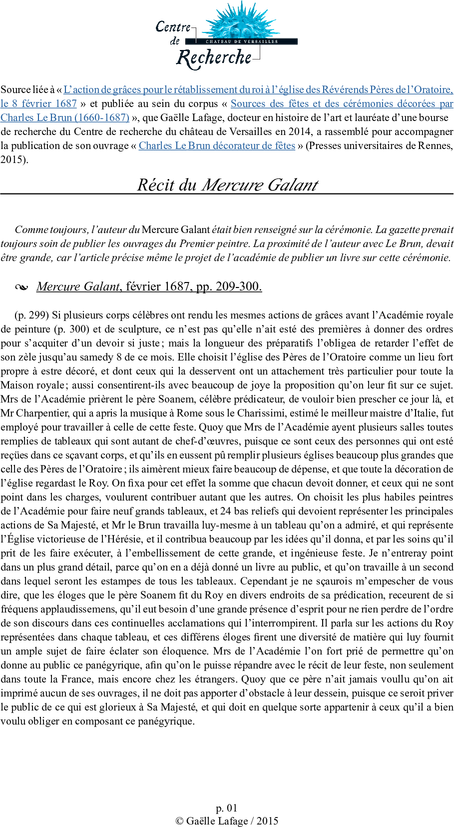 NIVELON Claude, Vie de Charles Le Brun et description détaillée de ses ouvrages, éd. par Lorenzo Pericolo, Genève, Droz, 2004, p. 402-403.