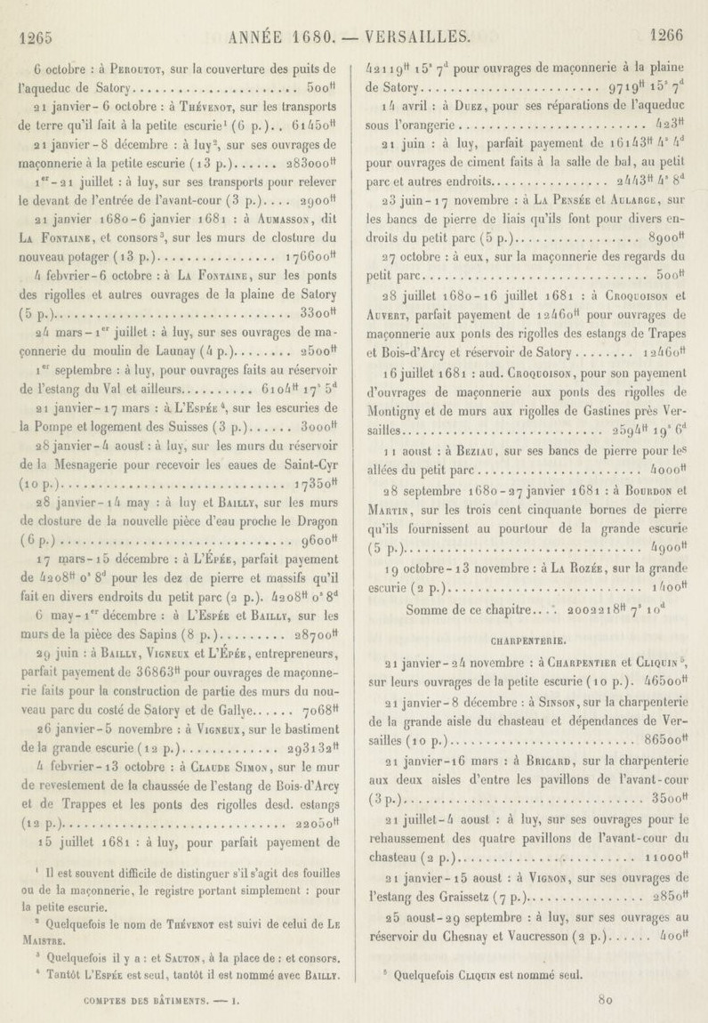 Comptes des bâtiments du Roi sous le règne de Louis XIV, édités par J. Guiffrey, Paris, Imprimerie nationale, 1881-1901, 5 vol.