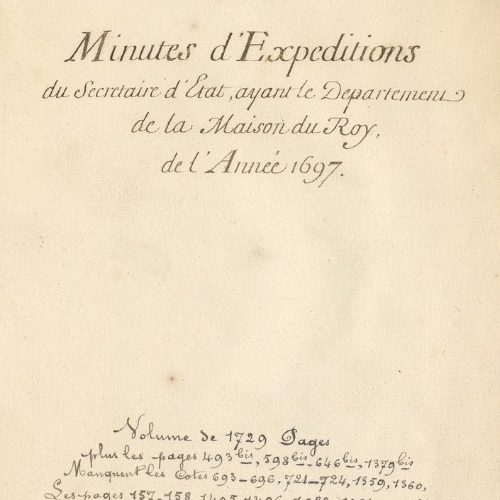 Minutes originales et expéditions faites par le secrétaire d’État de la Maison du Roi (1672-1706)
