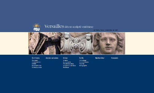 The Exterior Decorative Work of Versailles database by Béatrix Saule, general curator and director of the Centre de recherche du château de Versailles, was jointly produced by the Établissement public du Musée et du domaine national de Versailles and the Réunion des Musées nationaux. It has been online since October 2005.