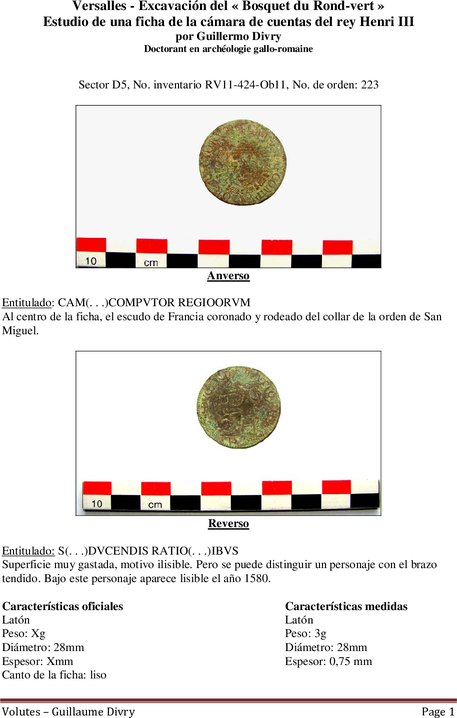 Ver artículo en línea en Bulletin du Centre “Fouilles archéologiques de la Grille royale du château de Versailles” por Annick Heitzmann y Justine Vorenger (en francés).